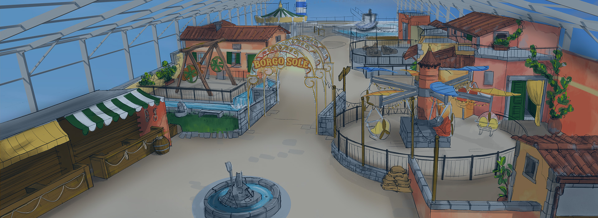 Fondendo il fascino di un borgo costiero italiano con l’experience design immersivo, il progetto trasforma l’ultimo piano del centro commerciale in un punto di riferimento iconico, progettato per aumentare il flusso di visitatori e integrare l’intrattenimento con l’offerta commerciale.